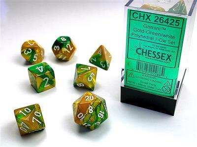 These Gemini® dice have the splendid effect of two colors being swirled together. First introduced in 2006, these dice were an instant hit and popular enough to make up their own line! Take a look and see what all the buzz is about! Each set comes with 7 dice: 1 D4, 1 D6, 1 D8, 2 D10, 1 D12, 1 D20.