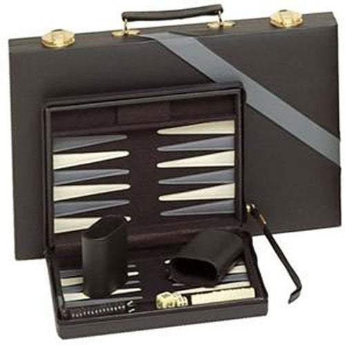 A stylish grey stripe makes this backgammon set stand out from all the rest! This handsome 9" black and grey backgammon set is adored for its compact size, carrying strap, and zipper closure. It is also magnetic for easy play. Makes a wonderful travel companion!