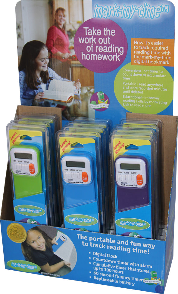 There’s no other product quite like it! Now you can accurately track children’s required reading times to help take the work out of daily reading homework!  Set a countdown reading timer that alerts readers when they have completed their required reading time or use the cumulative timer, which stores up to 100 hours of reading time over multiple sessions. Also includes a 60 second timer for reading fluency checks and math timed practice and a time of day clock. Fun colors and electronic functions encourage kids to make reading a daily habit. Simply set the timer and let your young reader make reading time...anytime!