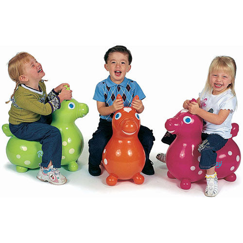 Gymnic's Rody Horse is a favorite with children to learn balancing and coordination while hopping on their Rody. Used in therapy for special needs children due to its softness and ride-on qualities. Made of super strong, latex-free vinyl, inflates according to size and weight of child with a hand or foot pump. Maximum inflated height is 21". Maximum sustainable weight up to 100 lbs.