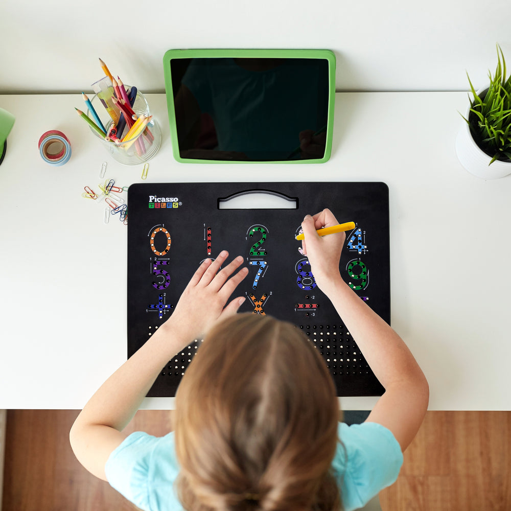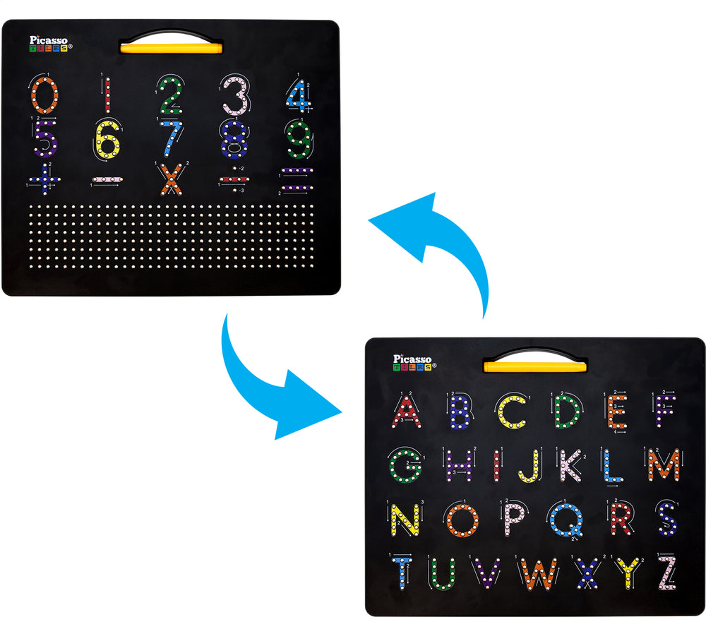 PicassoTiles Double Sided 12"x10" Letters and Numbers Magnetic Drawing Board