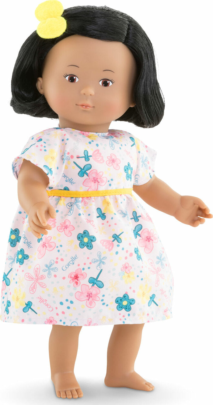 Florolle Capucine is 13-inch soft body doll, the perfect size for young make-believe moms and dads to hug and love. She has black, securely rooted hair, a playful look in her brown painted eyes and a cheerful smile on her face! Her head and limbs are made of soft, supple vinyl that is delicately scented with vanilla, a Corolle signature. Dressed in a floral-print dress and with a matching scrunchie in her hair, Capucine is part of the les Florolles Corolle collection, specially designed for little ones playing with dolls for the first time. Ages 18 months and up. (Doll cannot stand alone.)