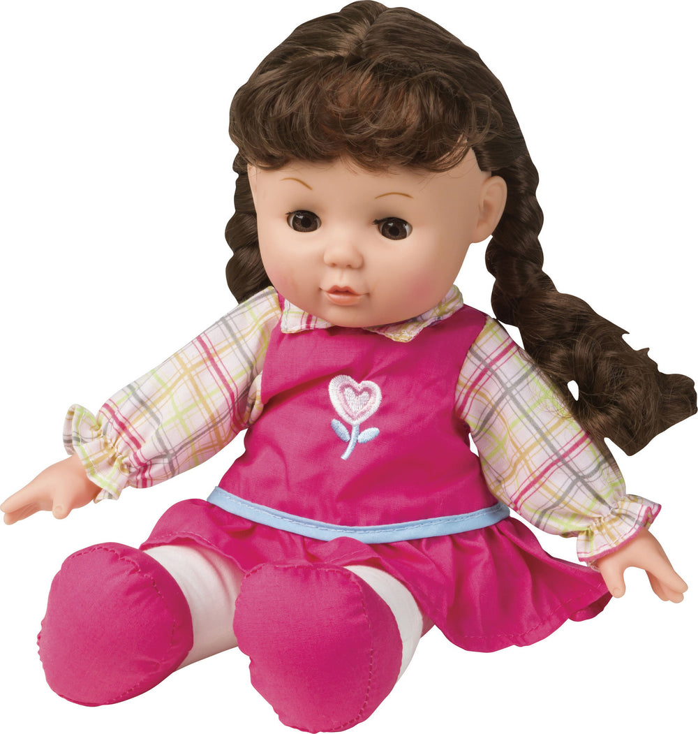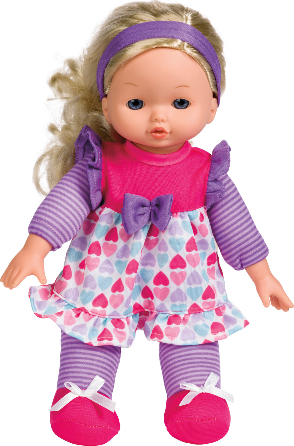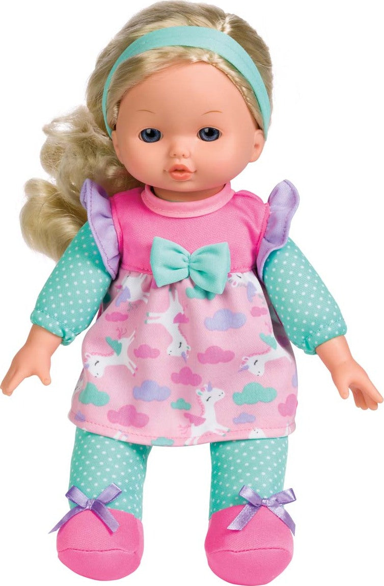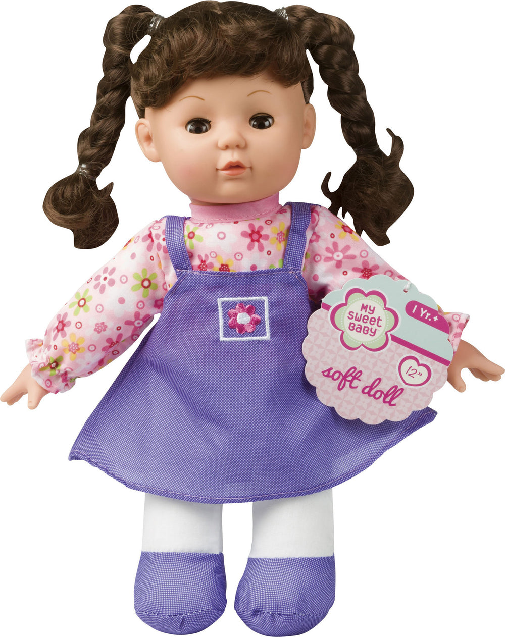 This popular doll from My Sweet Baby™ has lovely long hair kids can brush or braid and a colorful outfit. Dolls are soft-bodied with vinyl heads, hands, and feet. Each doll comes in an adorable outfit with a bow in it, 1 headband, and blonde or brunette hair. Doll clothing styles, hair color, eye color, and headband color vary. 6 assorted dolls come in a pink and blue display case. A great doll for little ones who love to pretend play.
