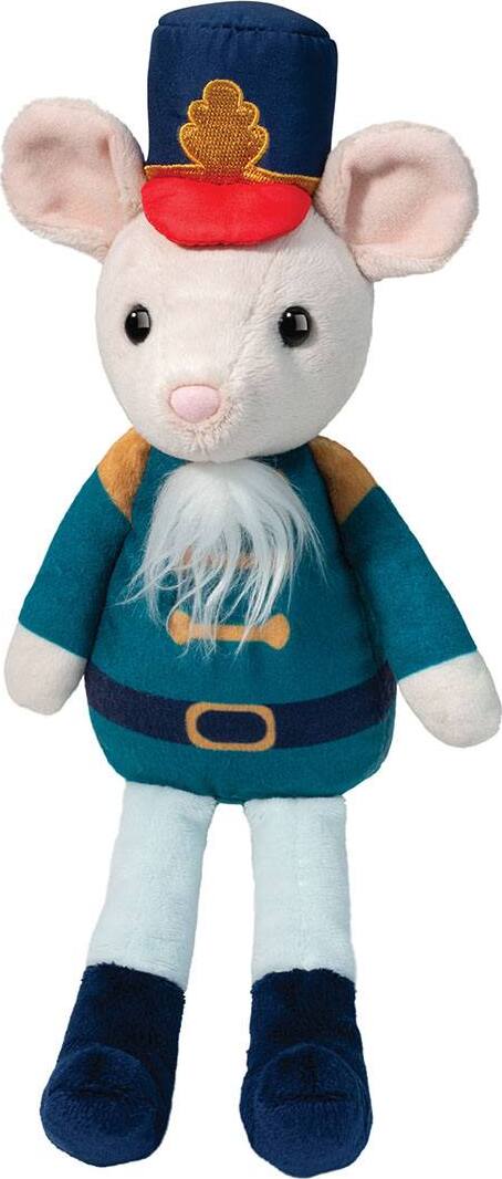 A dashing foe, the Mouse King from the beloved Nutcracker ballet has been brought to life as a playful plush companion! Dressed in a smart blue jacket and wearing a gold embellished hat atop his head, this character is ready to vault himself into the holiday season. His cuddly, plush body and engaging, bright eyed design will engage with the young and the young at heart. Let this handsome Mouse serve as a whimsical stocking stuffer or as a playful addition to your décor. There will be no end to the winter's enchantment when DOUGLAS' whimsical Nutcracker Mouse stuffed animal is near!
