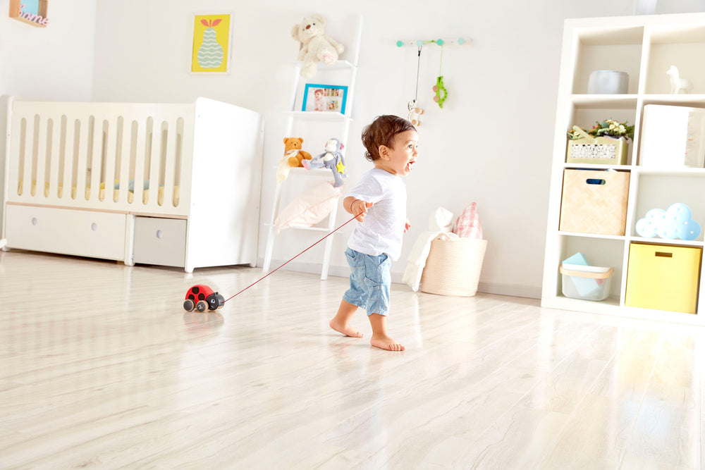 As you pull this cheerful ladybug along, her wings flap in delight. Great for encouraging children to crawl, walk and explore.