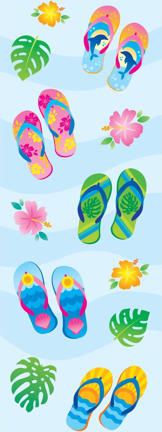 • Flip flop stickers include a variety of different types of colorful flip flops